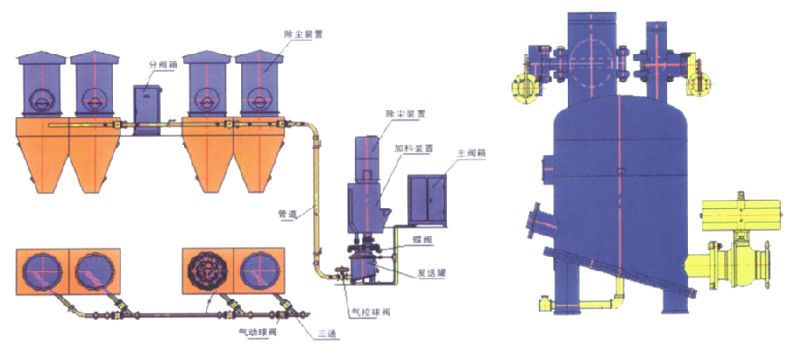 本裝置是利用壓縮空氣的動能 來輸送物料的。適宜于輸送粘土, 煤粉、石墨粉、水泥、面粉以及化工、冶金、糧食等行業輸送 各種粉狀物料蟄輸送的物料溫度不 得超過50℃含水量應低于2.5%。